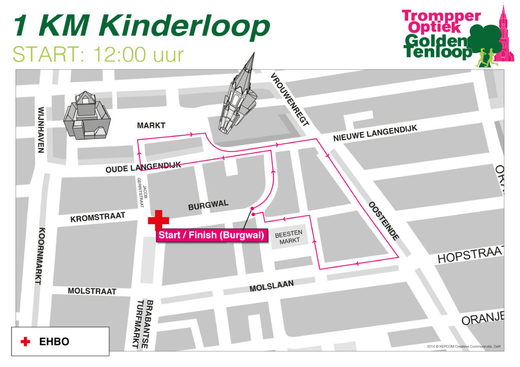 De 1 km Kinderloop start en finisht, net als de andere afstanden, op de gezellige burgwal. De loop gaat over de Markt en de Beestenmarkt vol met enthousiaste supporters. Er is een waterpost voor de 1km bij de finish.